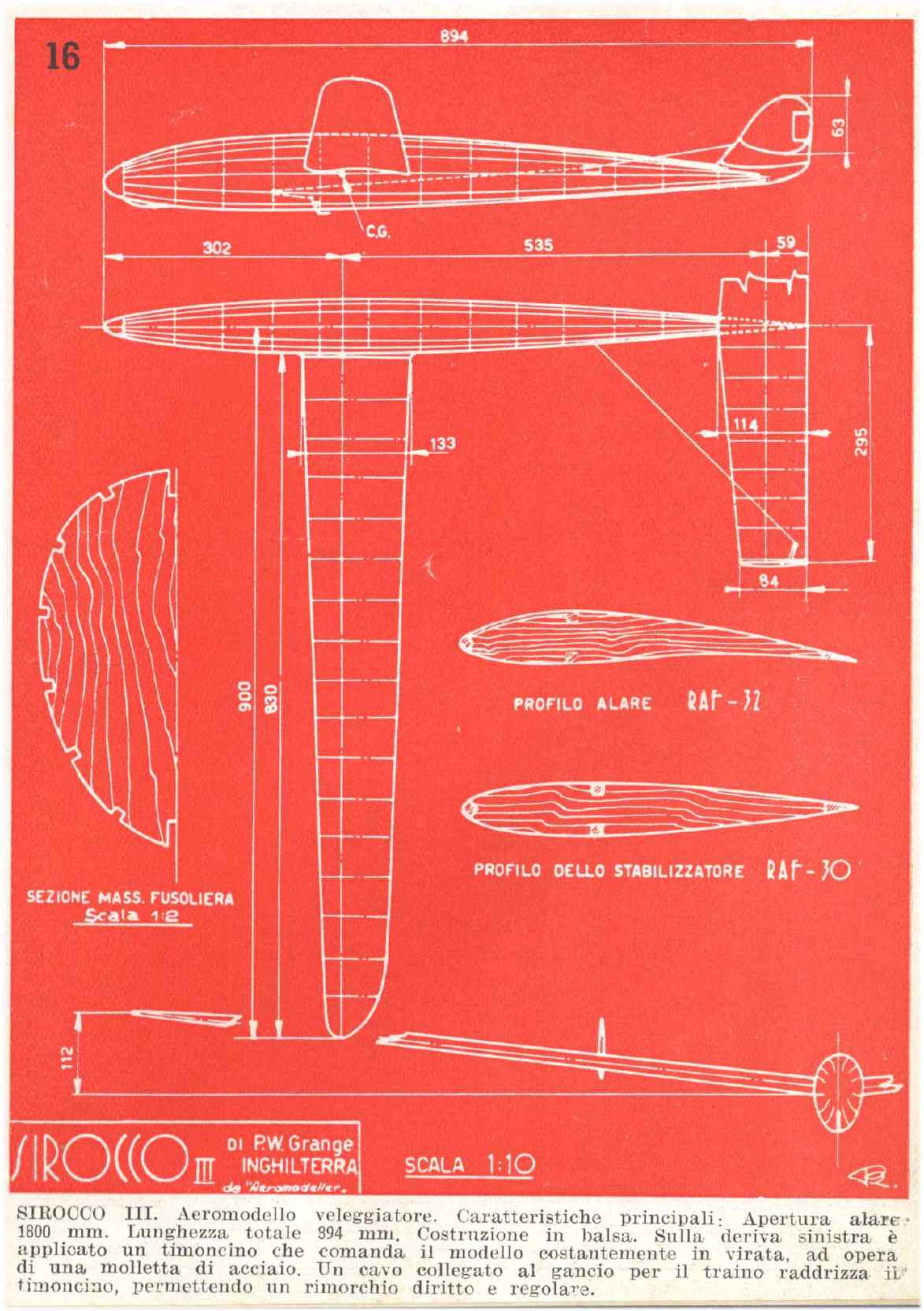 Il modello veleggiatore "Sirocco III" di P.W. Grange, Inghilterra. Da "Alata", 1946.