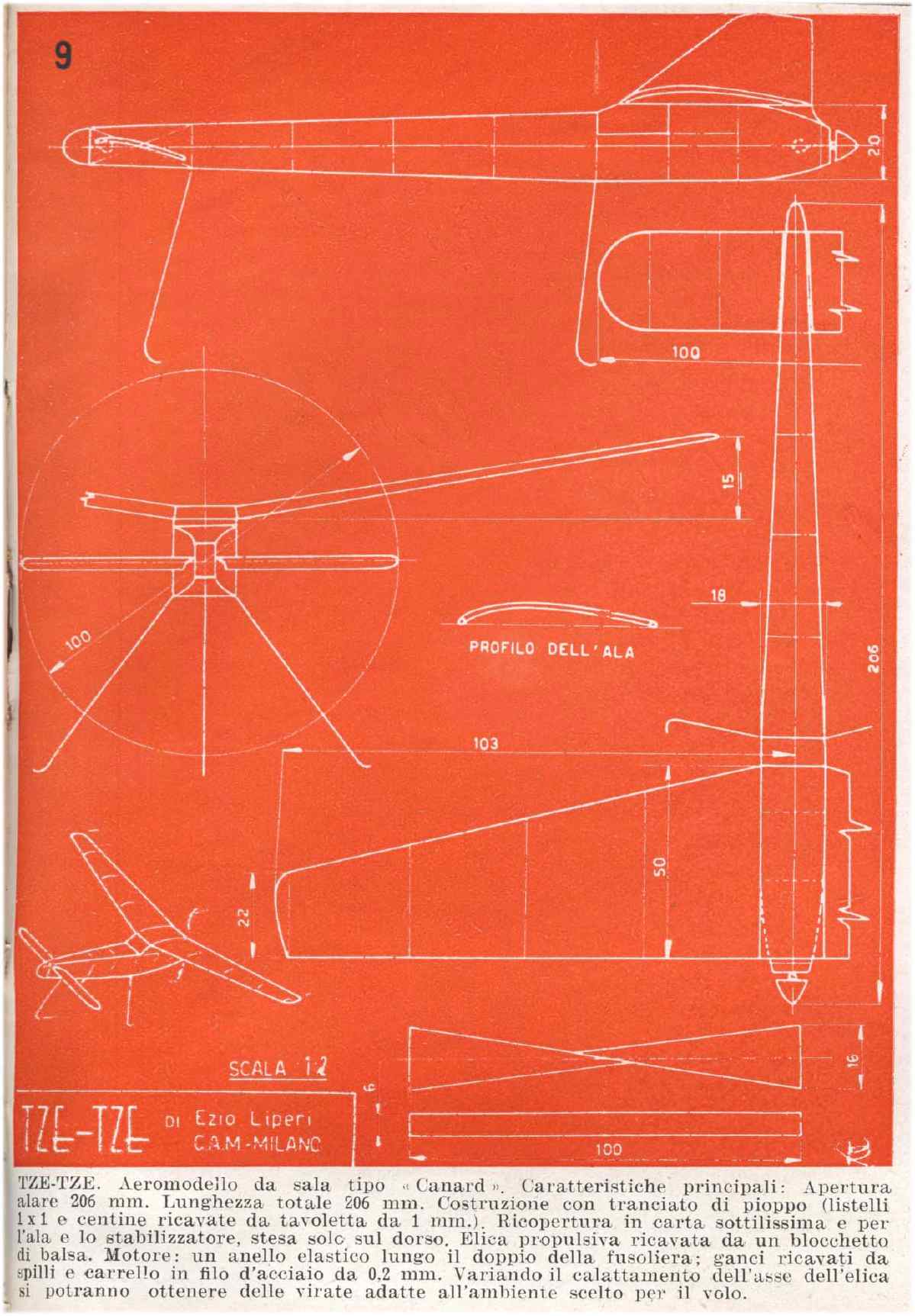 Il modello da sala "Tze-Tze" di Ezio Liperi, C.A.M.-Milano. Da "Alata", 1946.