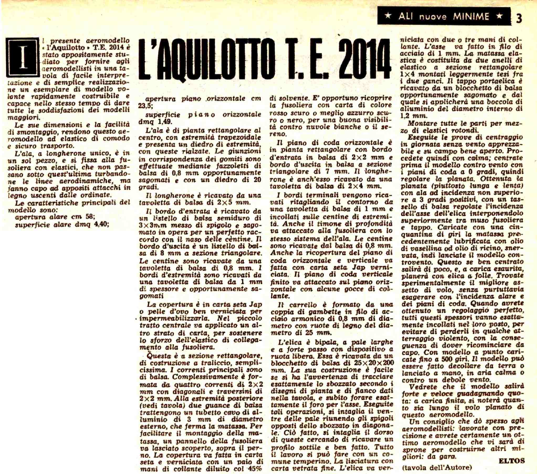 L'Aquilotto T.E. 2014 di Elvio Tosaroni (da "Ali Minime", 1958)