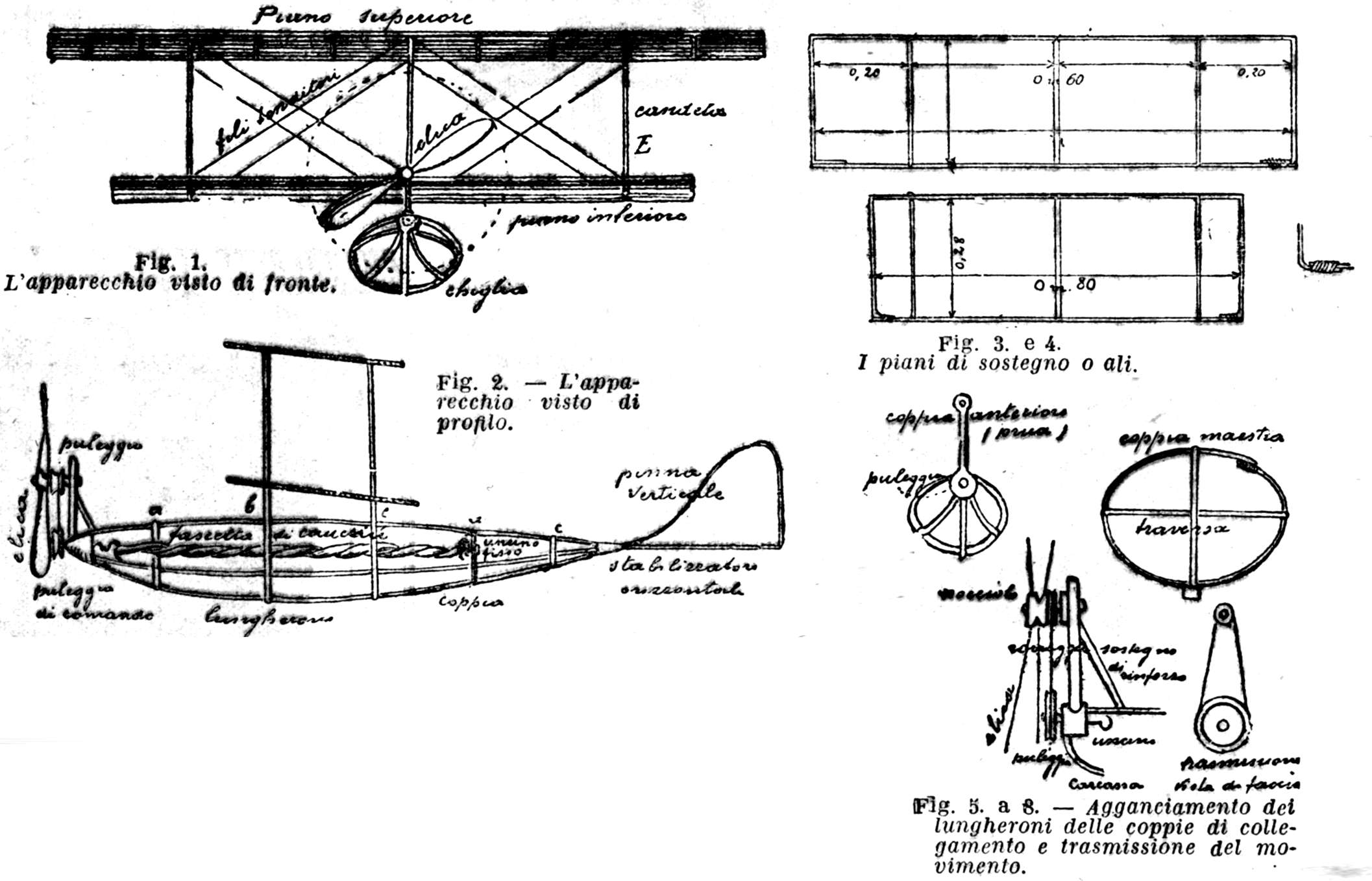 Da "Il Giovane Inventore" anno I (1925), numero 30, un disegno di un modello ad elastico idroplano.