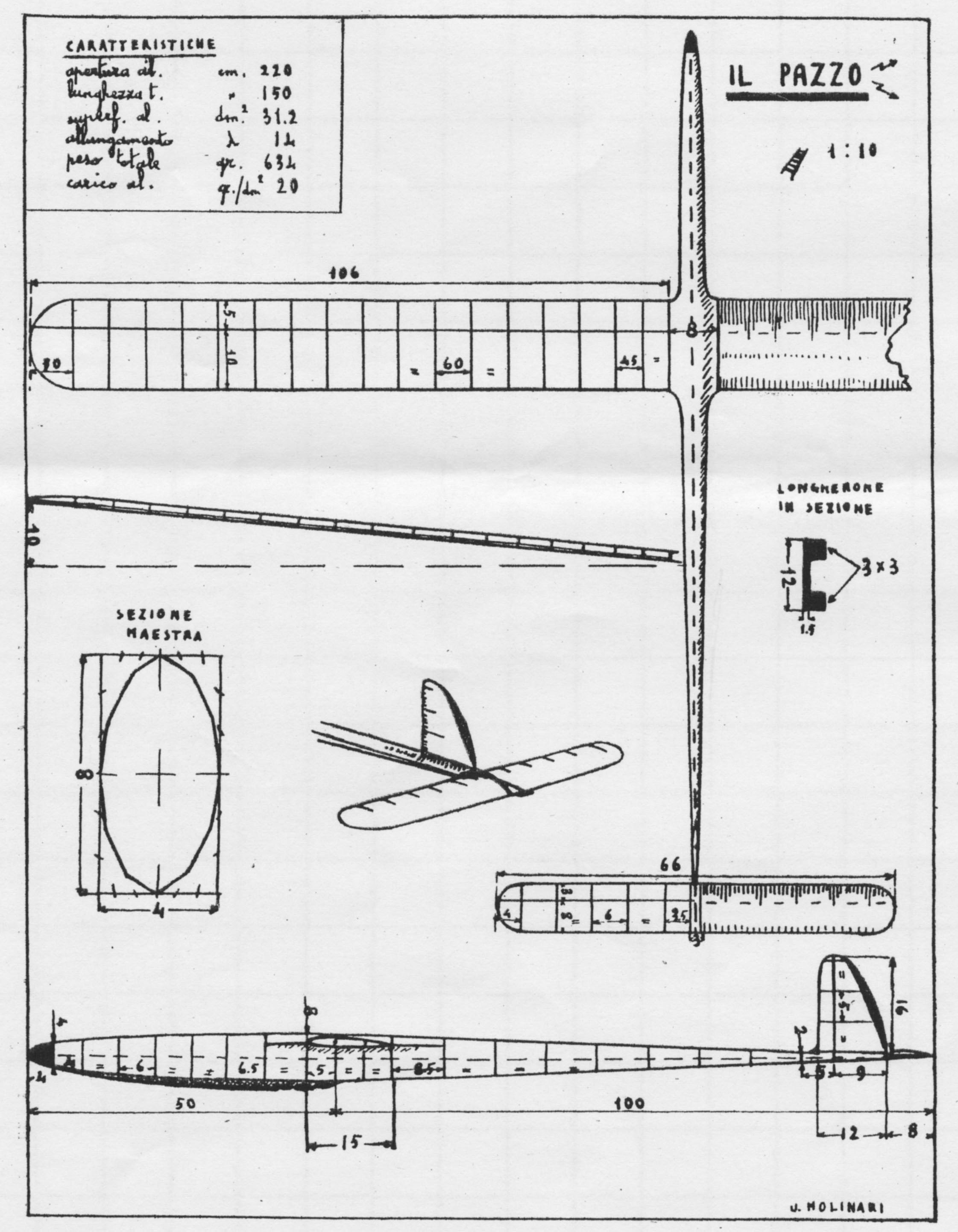 "Il Pazzo" aliante di Umberto Molinari, dal numero 7 del 1944 de "L'Aquilone"