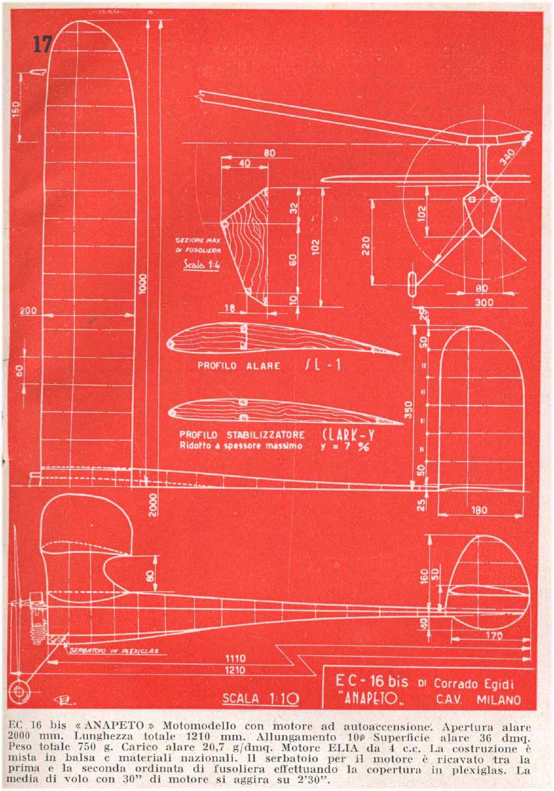 Il motomodello "Anapeto" di Corrado Egidi, C.A.V.-Milano. Da "Alata", 1946.