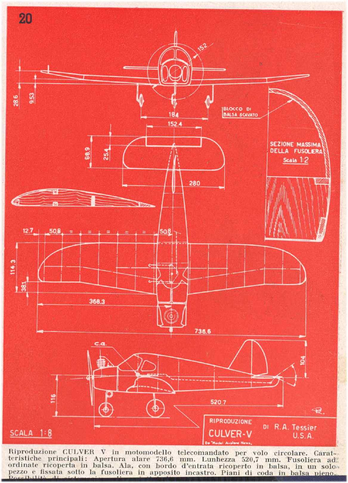 Il motomodello "Culver V" di R.A. Tessier, USA. Da "Alata", 1946.