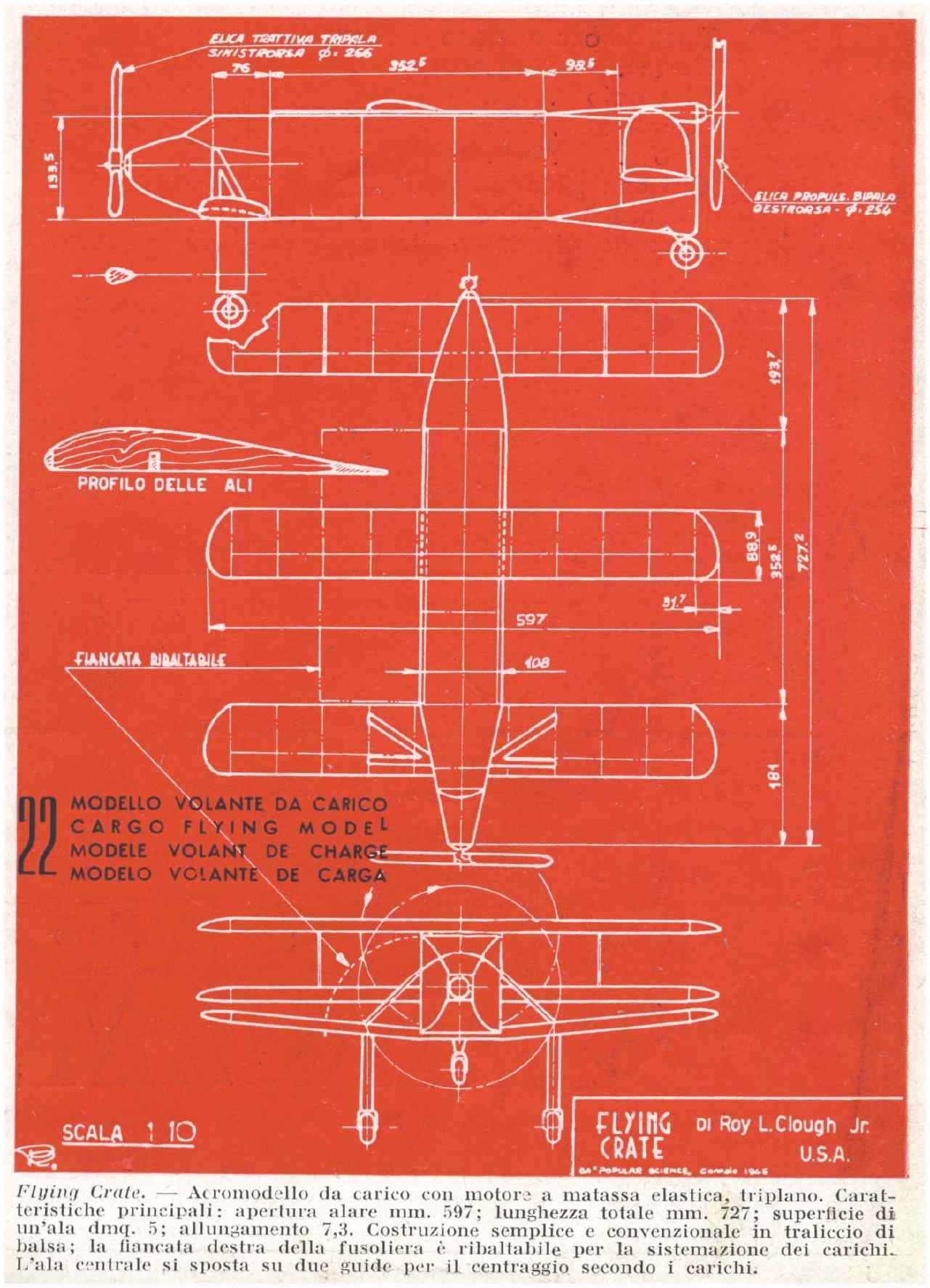 Il modello da carico "Flying Crate" di Roy L. Clough Jr., USA. Da "Alata", 1946.