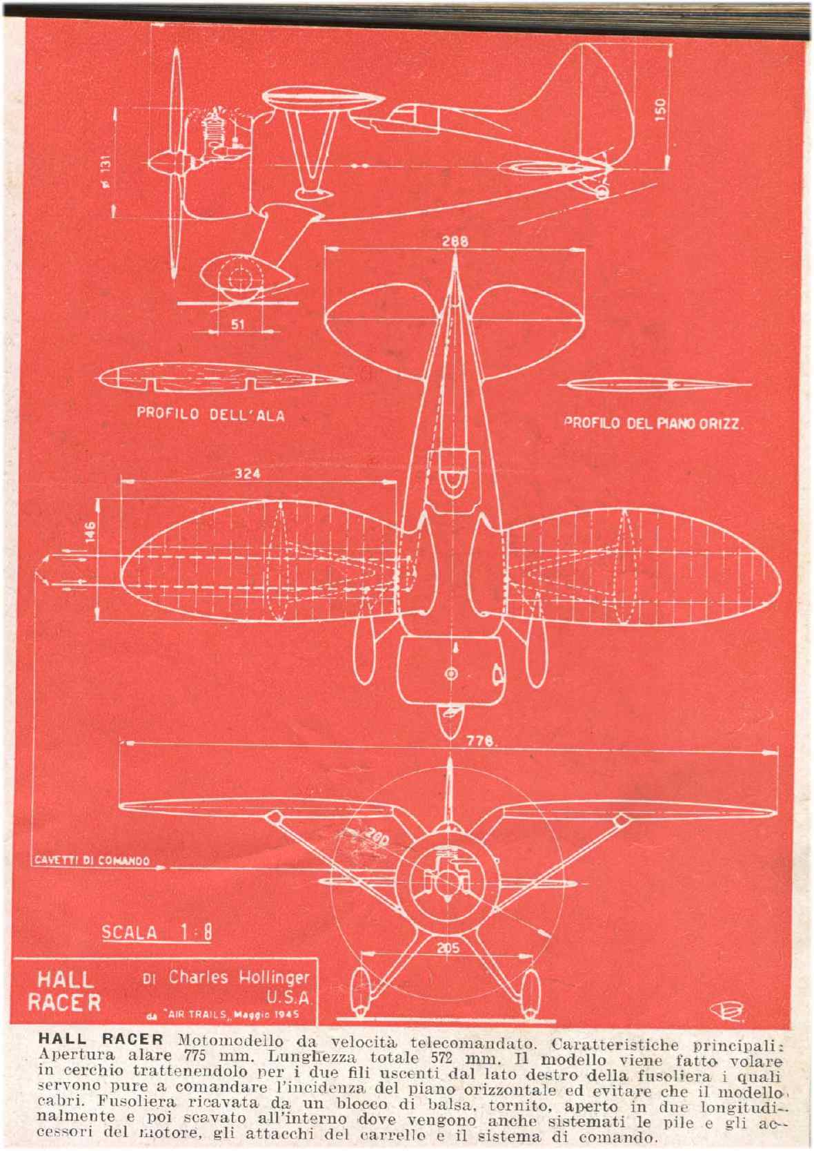Il modello racer "Hall Racer" di Charles Hollinger, Usa. Da "Alata", 1946.