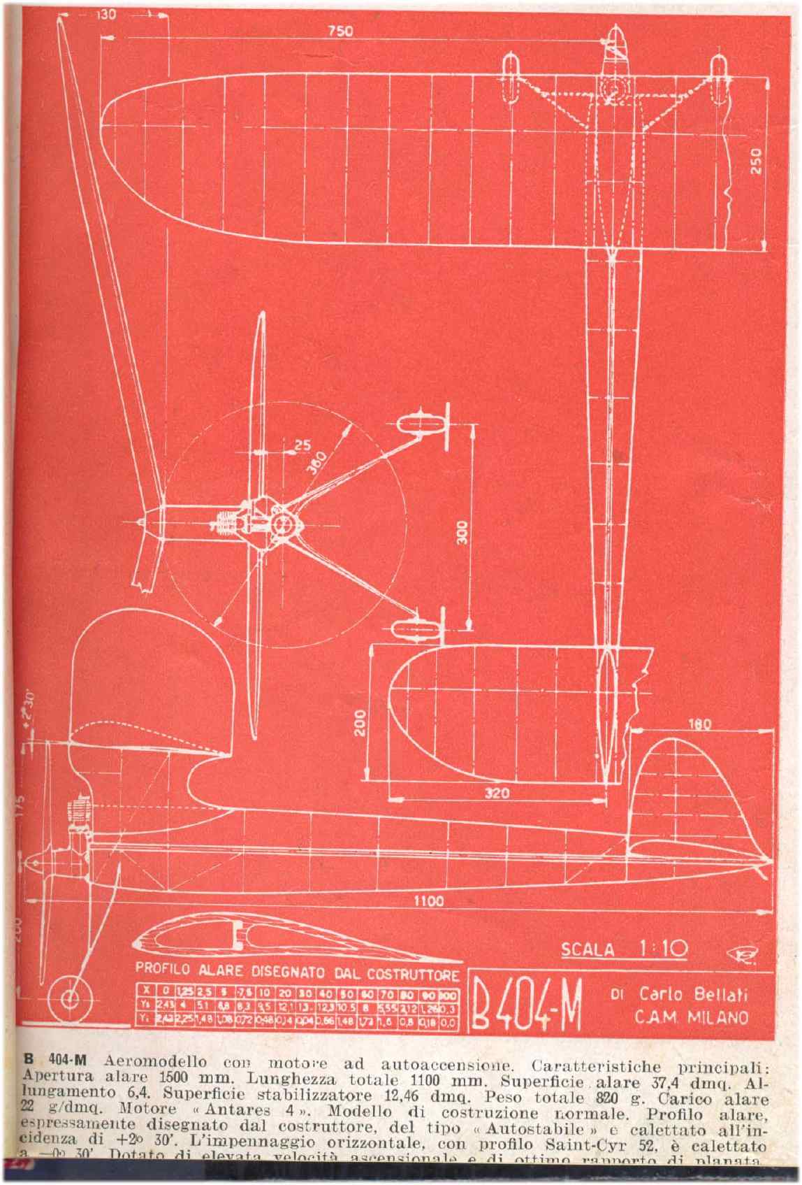 Il motomodello "B 404-M" di Carlo Bellati, C.A.M.-Milano. Da "Alata", 1946.