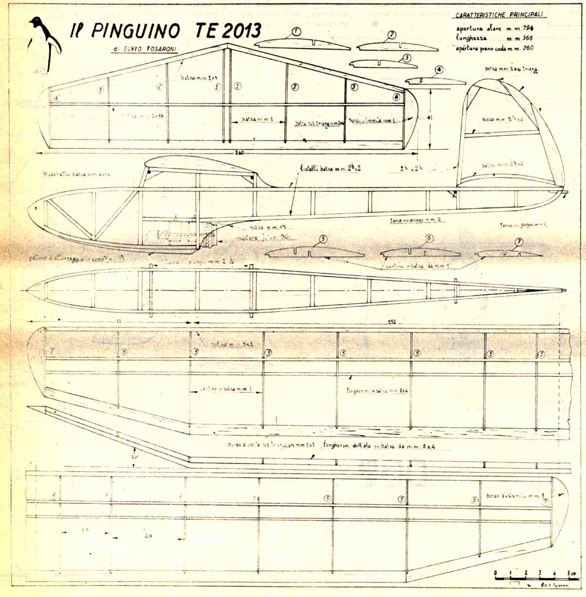 Un modello a volo libero per motorizzazione Jetex, il "Pinguino" T.E. 2013, progettato e disegnato da Elvio Tosaroni