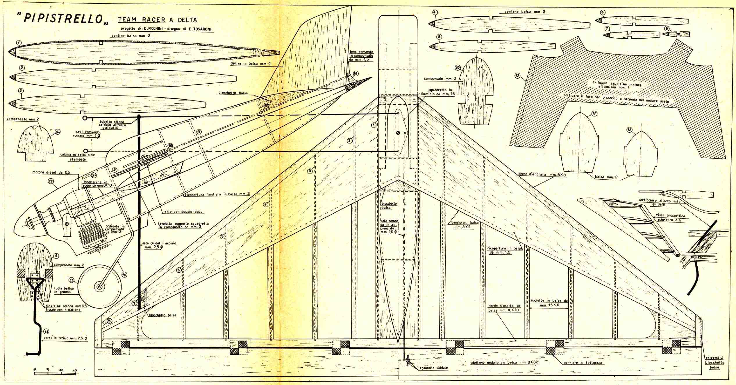 Il "Pipistrello", un modello Team Racer con ala a delta di E. Ricchini ("Ali Minime", 1961).