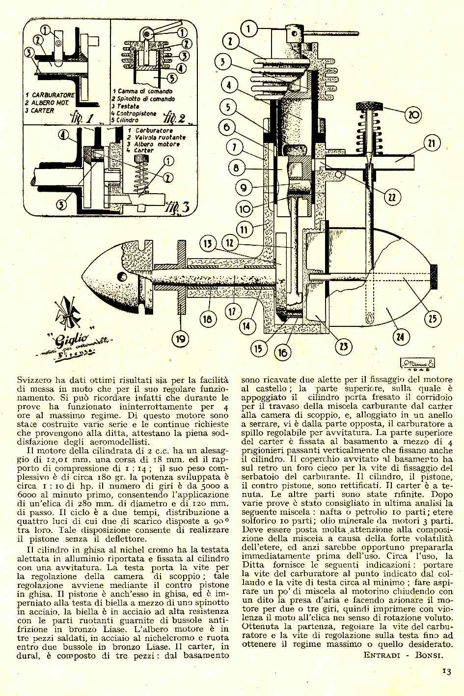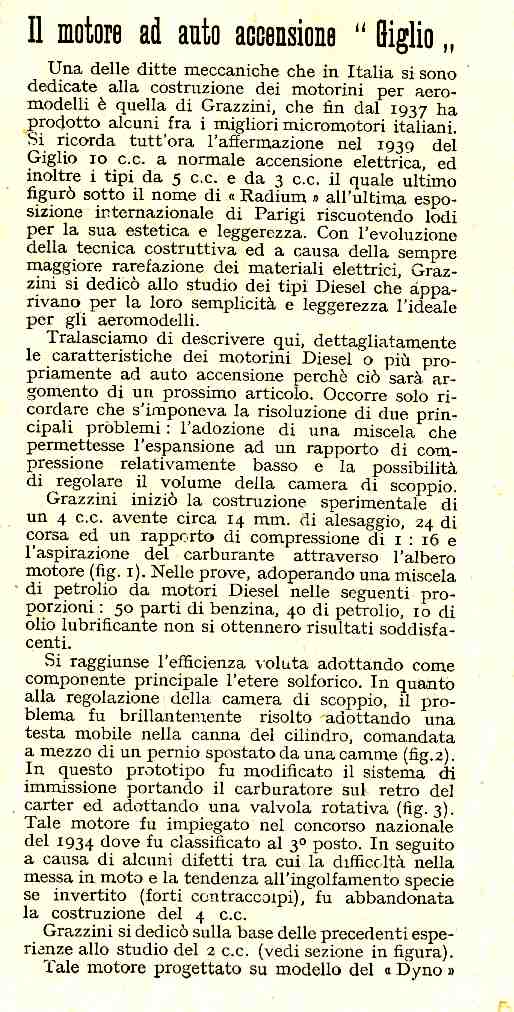 Il motore ad autoaccensione "Giglio" in un bell'articolo di Entradi e Bonsi. Da L'Ala, n. 1, 1945.