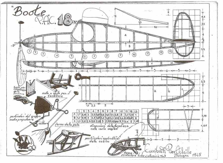 "Boote P.A.C. 18", modello ad elastico di Pier Achille Cuniberti (da "L'Ala", 1946, numero 1)