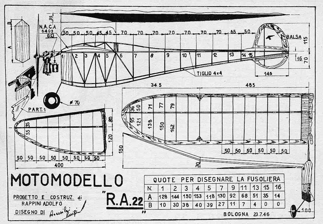 Il motomodello "R.A. 22" di Adolfo Rappini disegnato da Luigi Arcesilai.