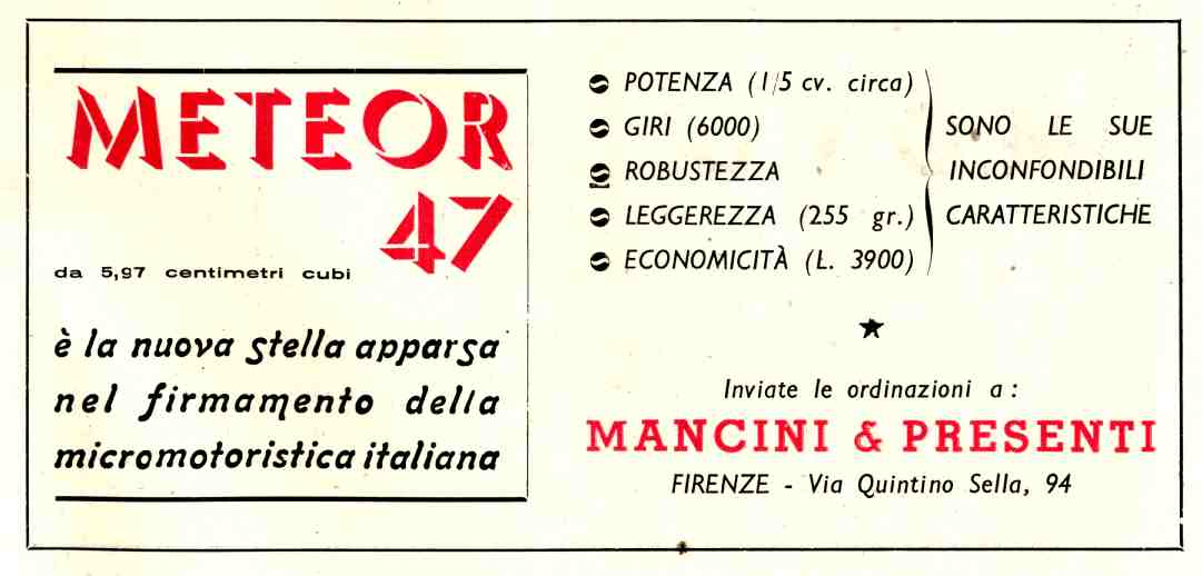 Il motore Meteor 47 in una pubblicità del 1947.