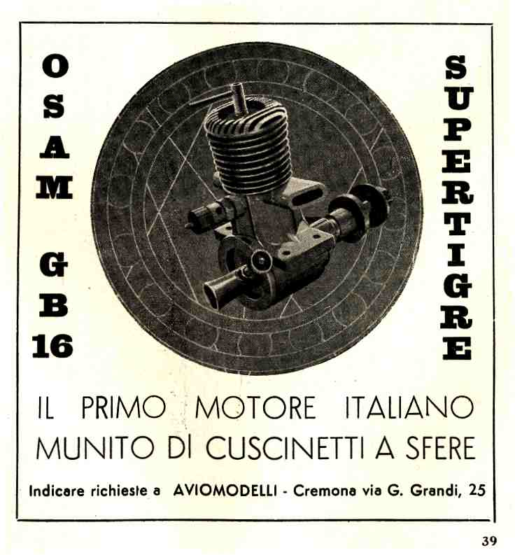 Il motore OSAM GB 16 "Supertigre" in una pubblicità del 1947.
