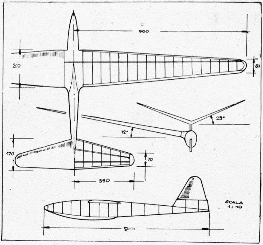 Il veleggiatore "Ghibli" di L. Pellegatti (da "L'Aquilone" n. 10, 1952):