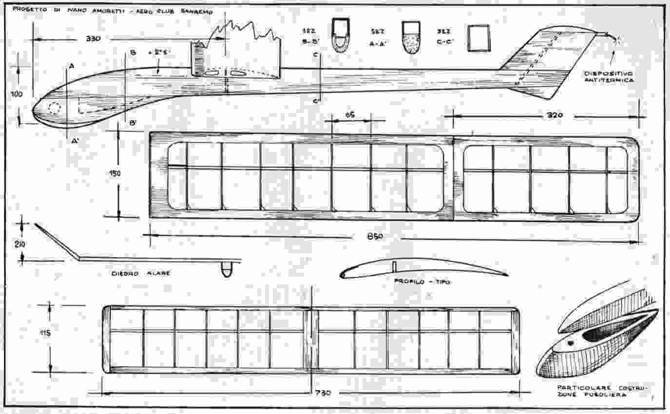 Un bell'aliante scuola il "Mambo" di Ivano Amoretti, (da "L'Aquilone" n. 18, 1952):