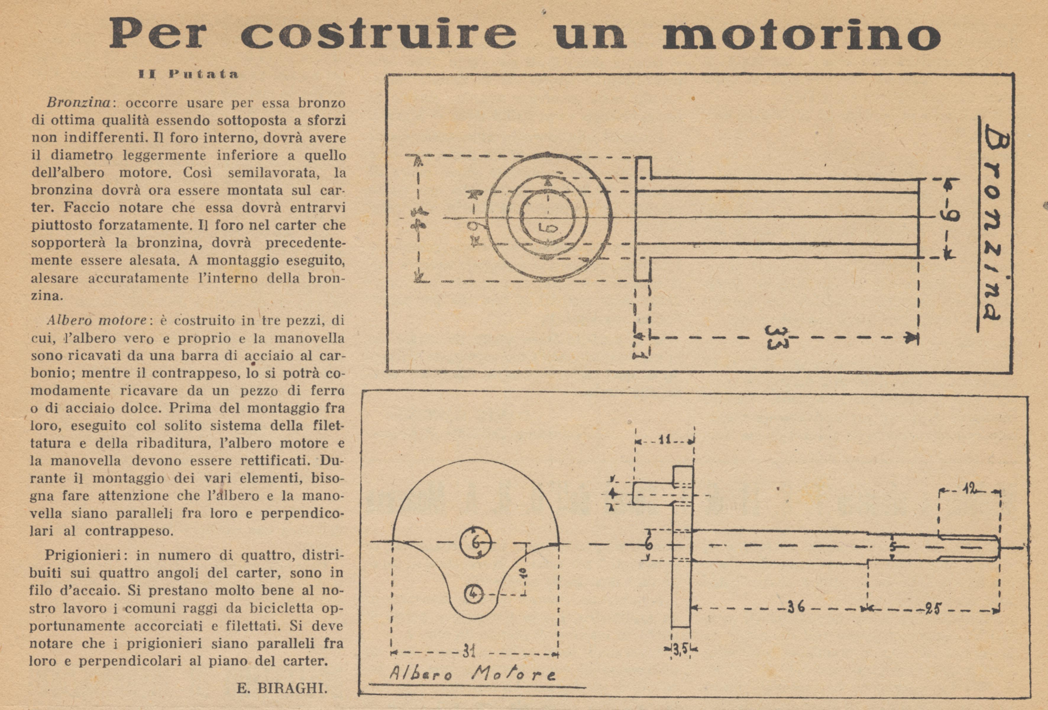 Emilio Biraghi presenta un suo motore per l'autocostruzione, dal numero 2 del 1945 de "L'Aquilone"