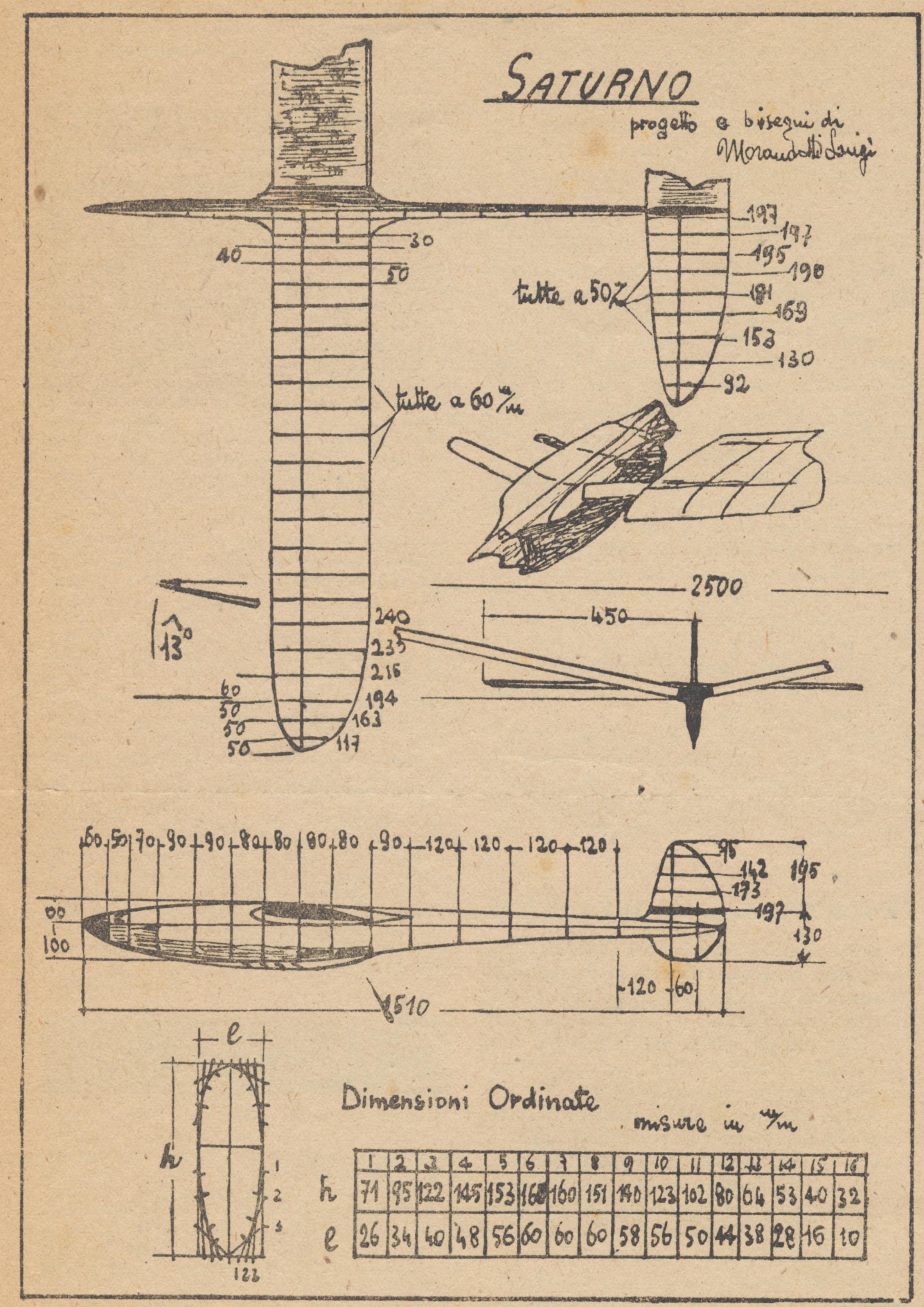 "Saturno", veleggiatore di Luigi Morandotti, dal numero 2 del 1945 de "L'Aquilone"