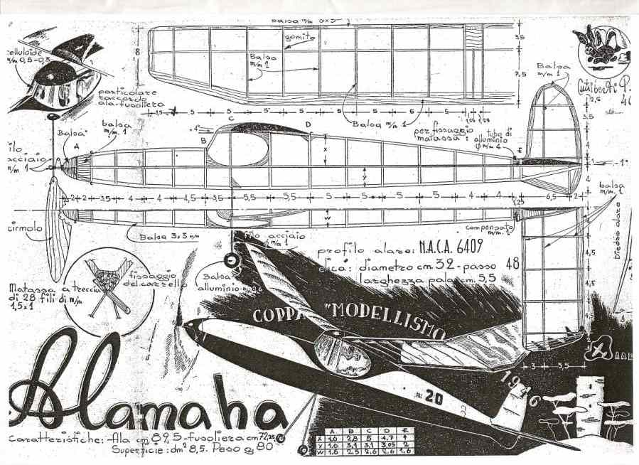 "Alamaha" modello ad elastico di Pier Achille Cuniberti (da "Aviazione Popolare", 1946)