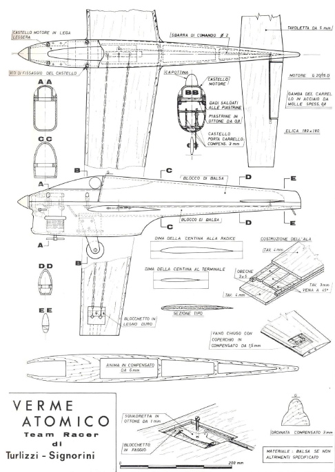 Il "Verme Atomico" team racer di Uccio Turlizzi e Carlo Signorini (da "Modelli in Europa")