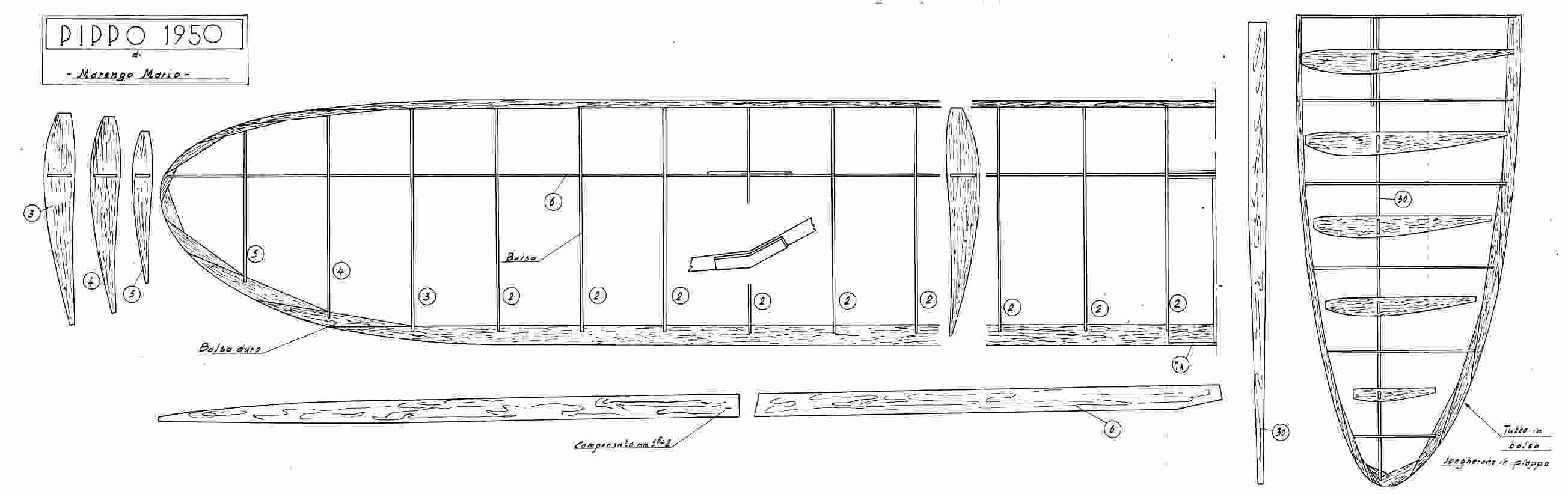 Dal n° 33 (1950) di "Modellismo" il motomodello "Pippo" di Mario Marengo; tavola 2.