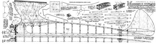 Dal n° 36 di "Modellismo" un motomodello americano formula FAI, il "Super Phoenix", assai celebre ai suoi tempi, di Frank Ehling; Tavola 1.