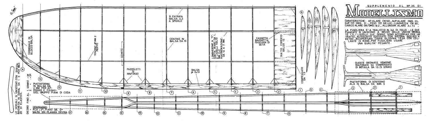 Dal n° 35 di "Modellismo" un bel motomodello, formula FAI, di Eraldo Padovano, campione d'Italia 1950: il "Tiger Rag"; Tavola 2.
