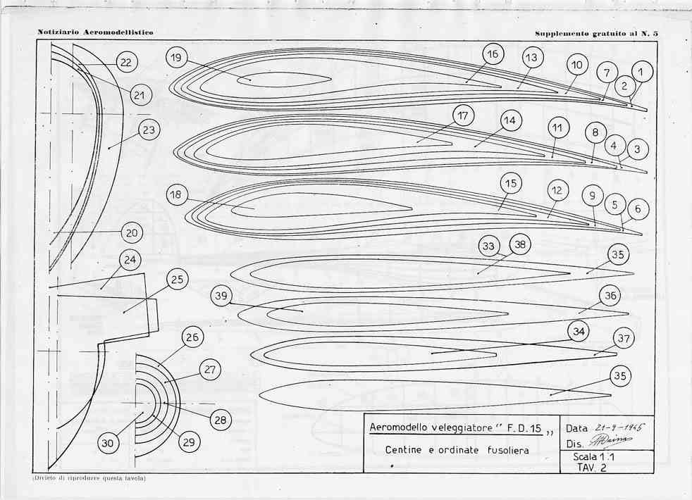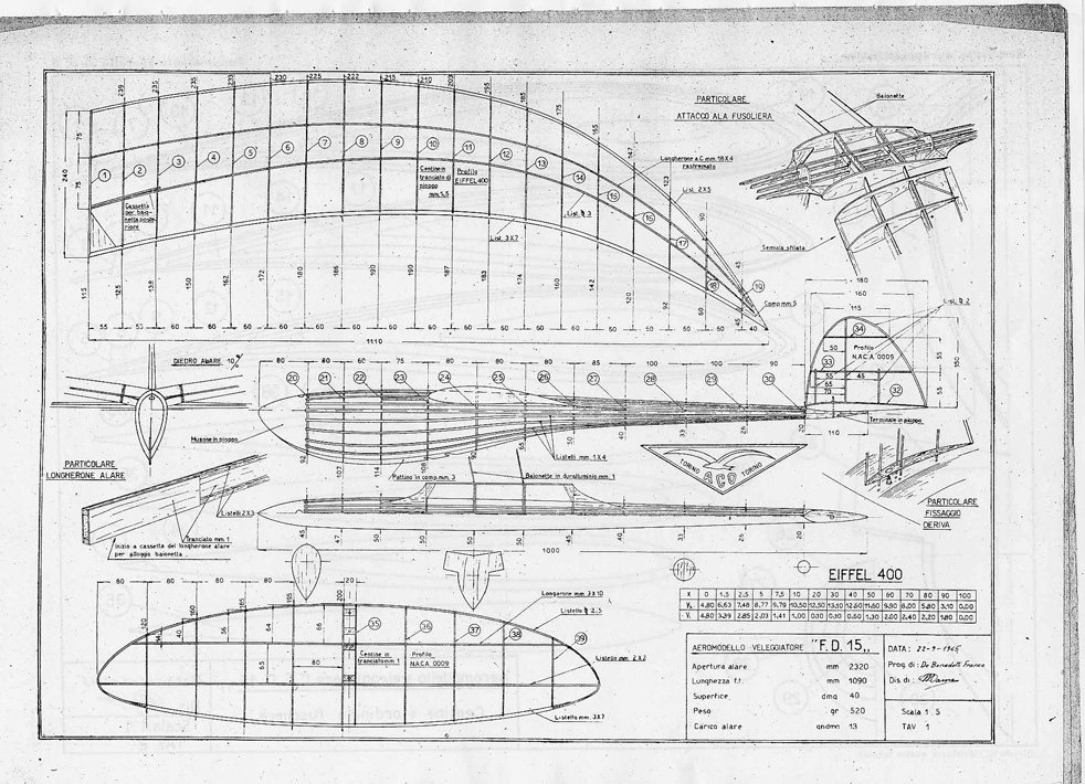 Ecco la tavola del n° 5, un veleggiatore con ala a scimitarra, in due parti, di Franco de Benedetti Tavola del n° 5 parte I. Tavola del n° 5 parte II.