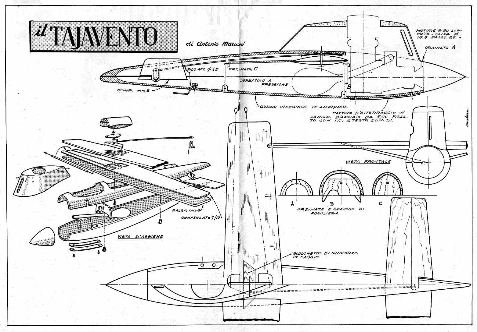 Il "Tajavento", bel modello VVC da velocità classde A di Antonio Marconi, disegnato da Gioachino Matese.